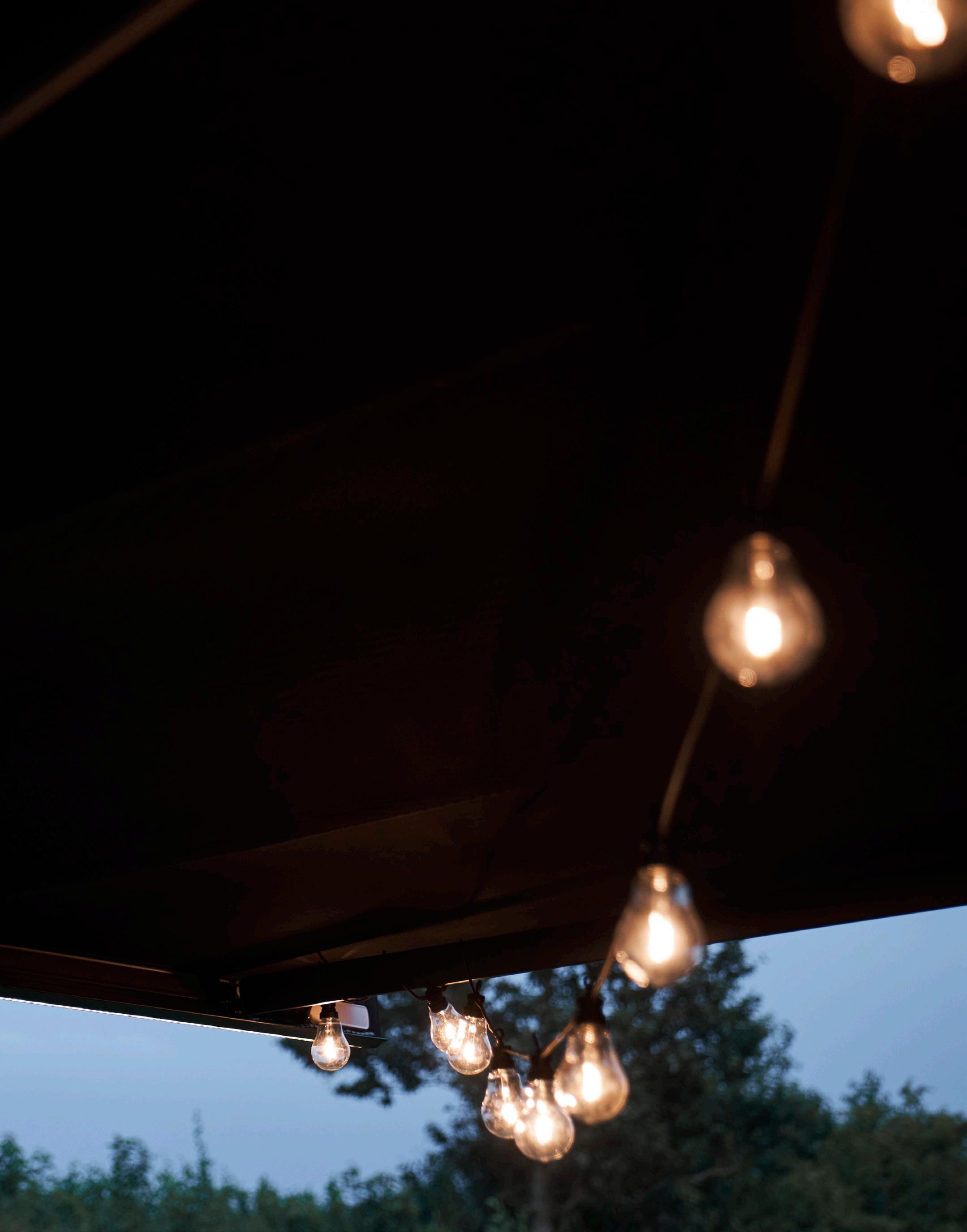 Kan integreres i arme og/eller forbom på de fleste modeller. Skaber en hyggelig stemning og gør det muligt at nyde terrassen længere. Lysstyrken kan justeres efter behov.