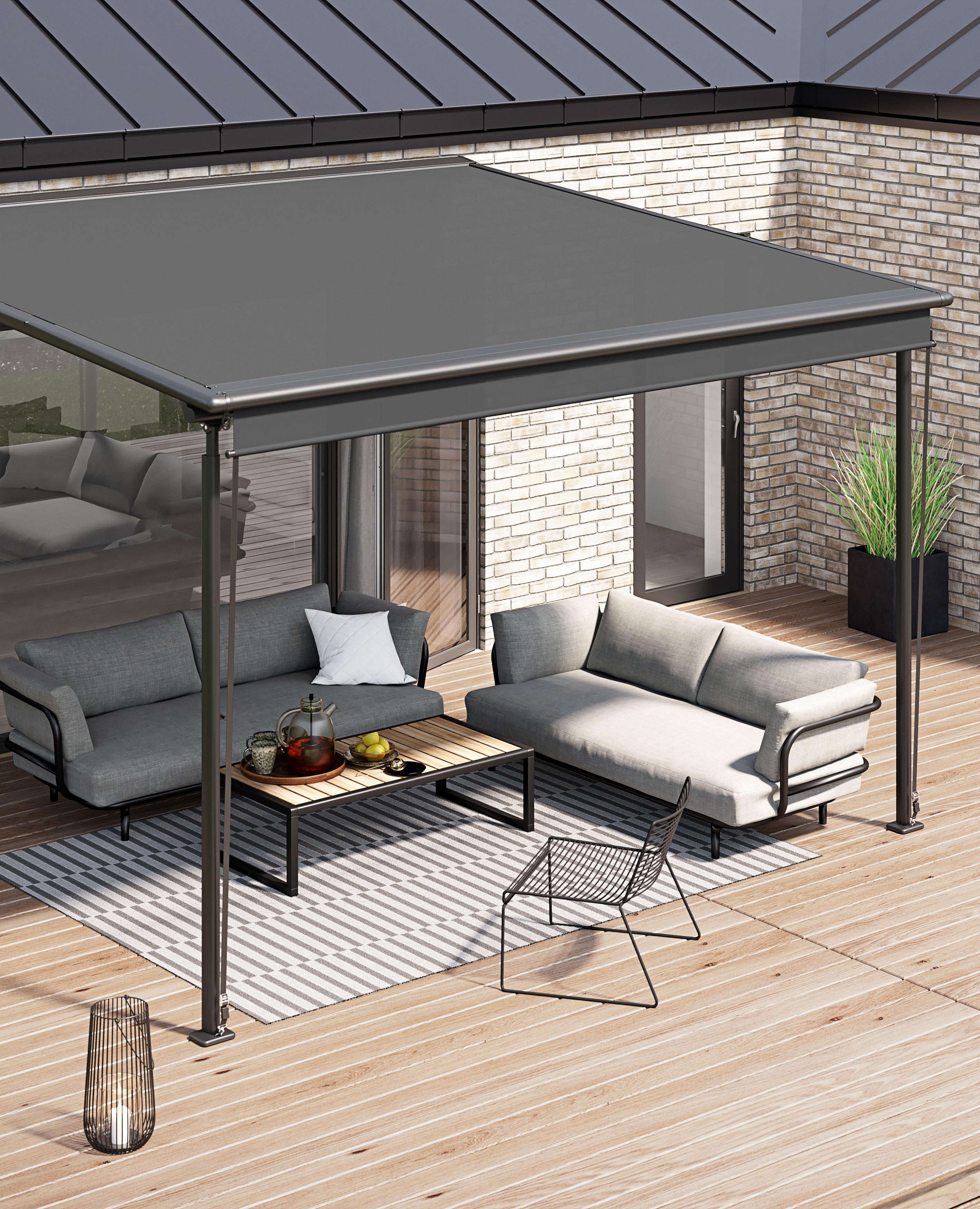 • Vindstærk zip-system: Den stramme og sikre fastgørelse af dugen sørger for, at pergolaen står stabilt, selv under blæsende forhold.