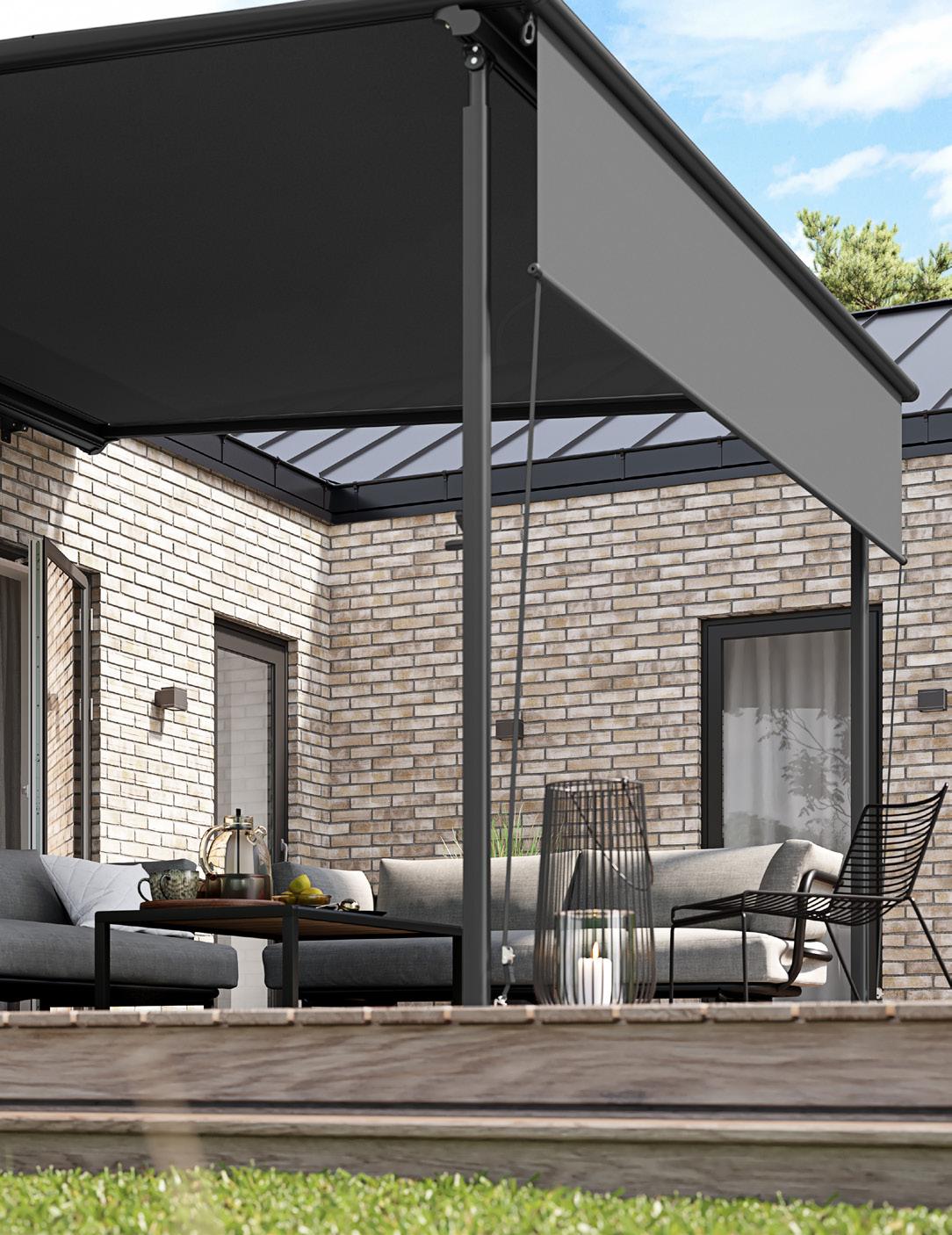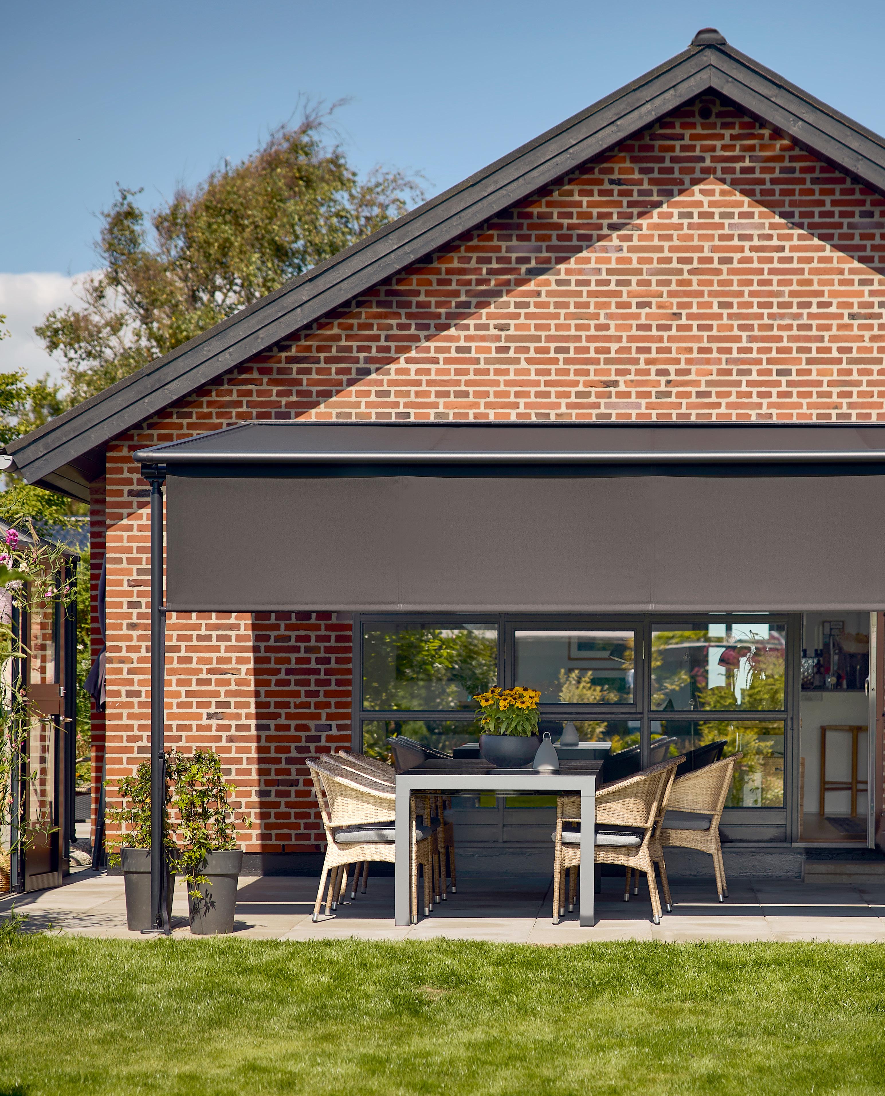 • Stabil og vejrbestandig: Den faste konstruktion med lodrette stolper giver en mere stabil og vindstærk løsning end en traditionel markise, hvilket gør pergolamarkisen ideel til det omskiftelige nordiske vejr.