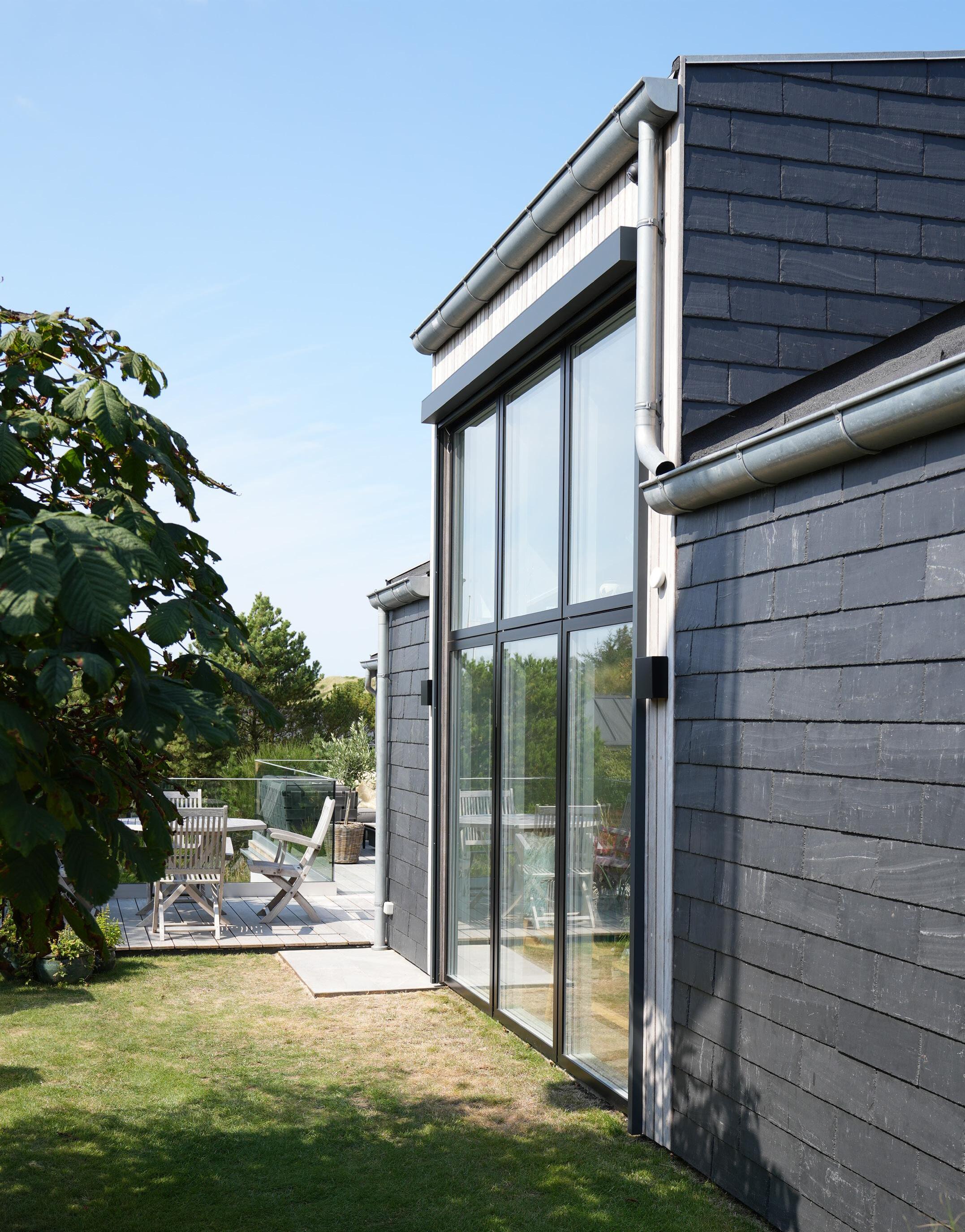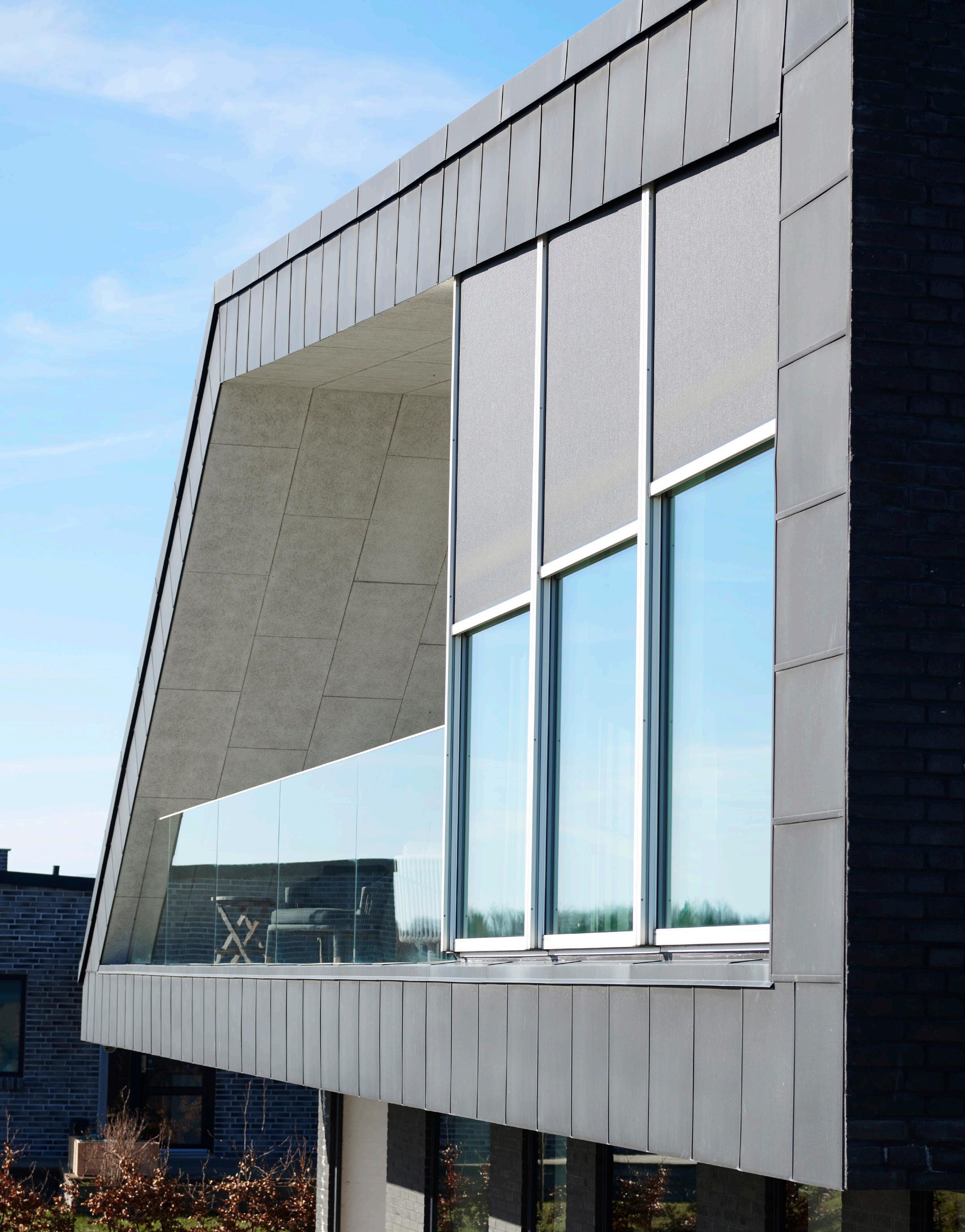 De udvendige screens integreres elegant på husets facade.