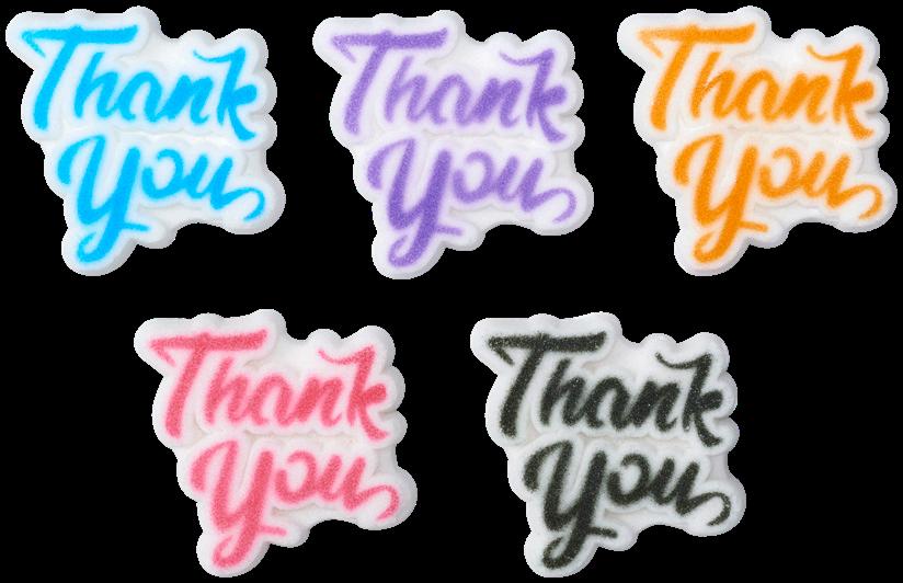 Bright Confetti Quins Shown on cookie: #47122 Apple Dec-Ons® and #26155 Renshaw Ready-To-Use Royal Icing Shown on cookie: #49937 Thank You Assortment Dec-Ons® and #26155 Renshaw Ready-To-Use Royal Icing