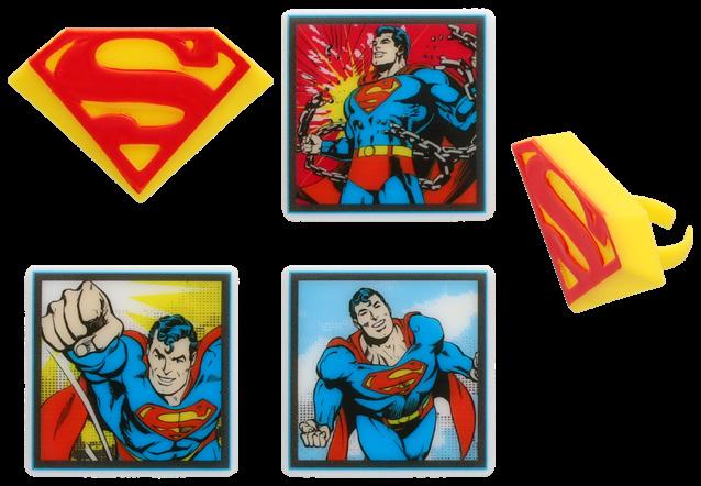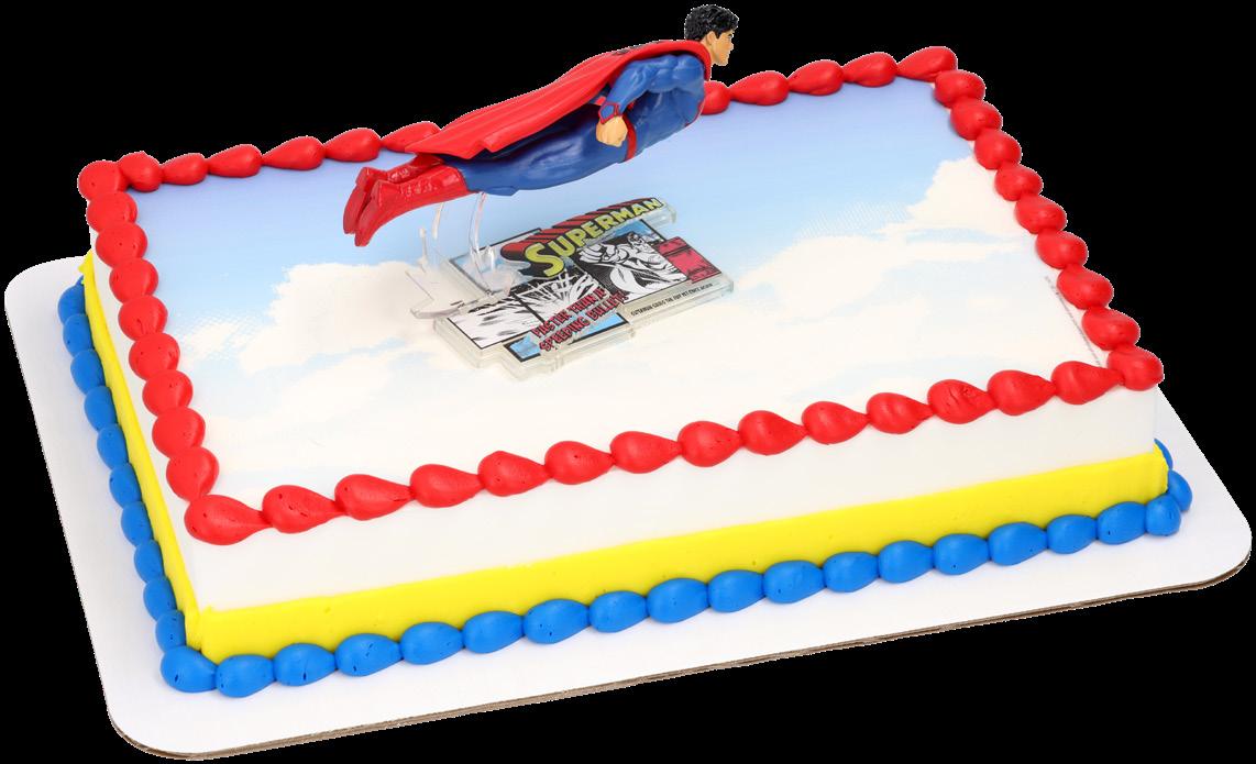 NEW! SUPERMAN™ MAN OF STEEL #63059 DecoSet® – 1/Pkg #63137 PhotoCake® Edible Image® DecoSet® Background – Each #63154 PhotoCake® Edible Image® DecoSet® Background – Each Flying Superman™ figurine with stand.