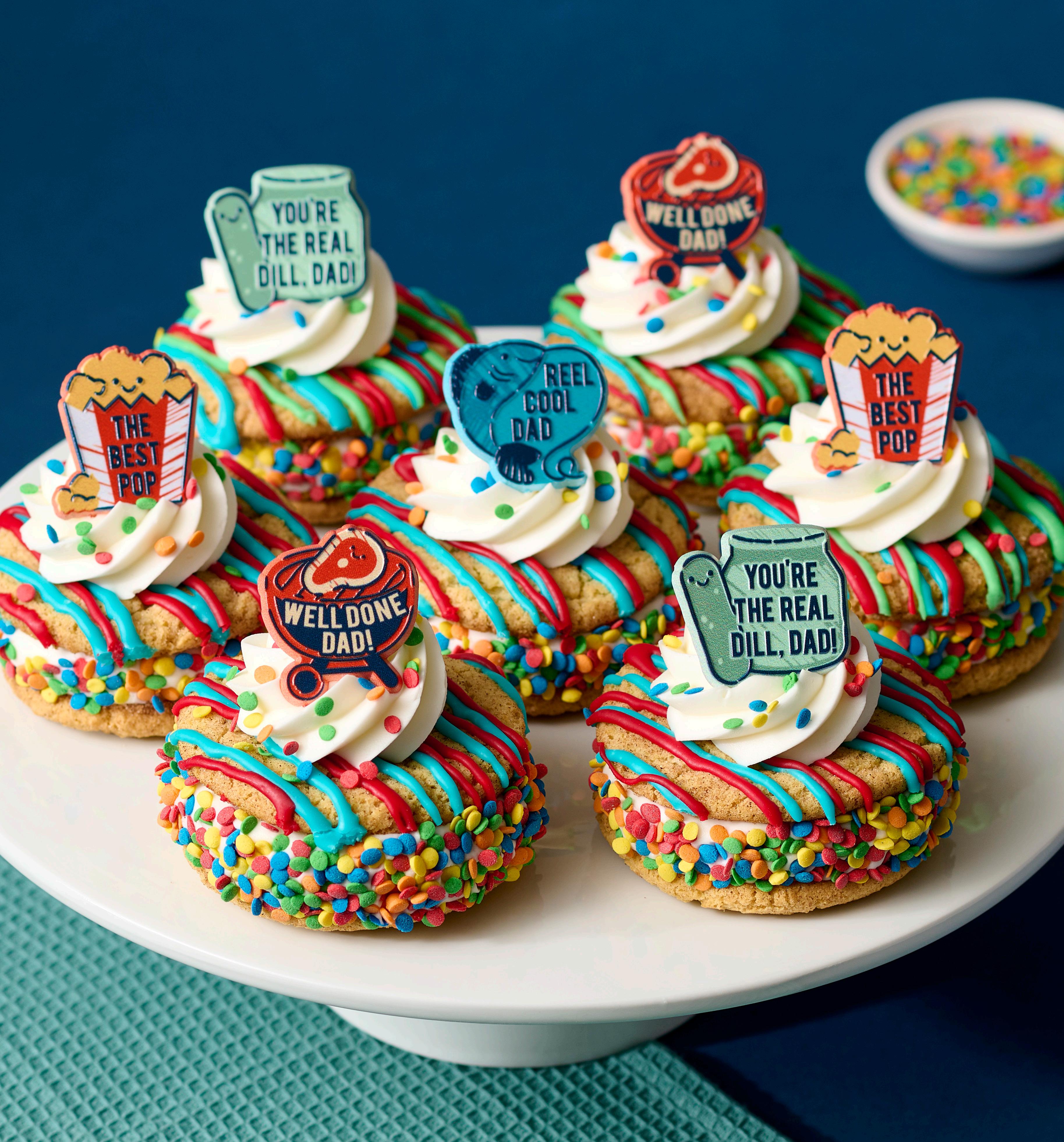 Shown on marquee: #25503 Father’s Day Hero Assortment Pop Tops®, #25502 Happy Father’s Day Hero DecoPics®, #20705/9464 Yellow - Red 3 Free Sprinkles, #20699/10381 LimeRed 3 Free Green Sprinkles, #20697/9742 Blue - Red 3 Free Sprinkles, and #20703/9738 Red - Red 3 Free Sprinkles