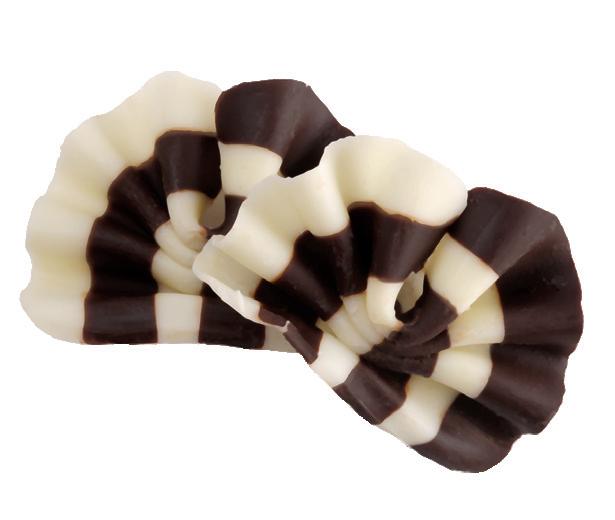 Shown on 6: triple layer round: #28593 Carpe Diem Layon, #28703 Carpe Diem Sweet Décor®, #15854 Pink Curls Chocolate, and #17217 White Curls Chocolate