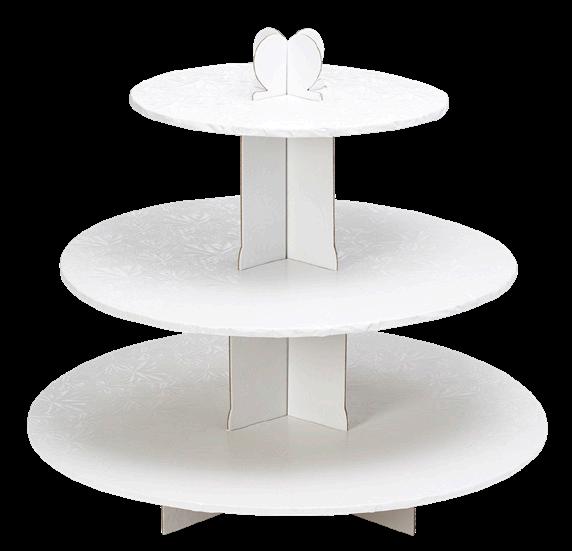 1/Pkg – White PVC – $113.60 Holds up to 155 cupcakes. 6.5” dia., 10.5” dia., 14.5” dia., 18.5” dia.