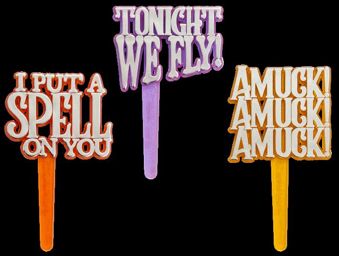 Shown: #28198 Eerie-Sistable Skewers, #22945 Halloween Fusion Mix, and #20706 Black Sanding Sugar