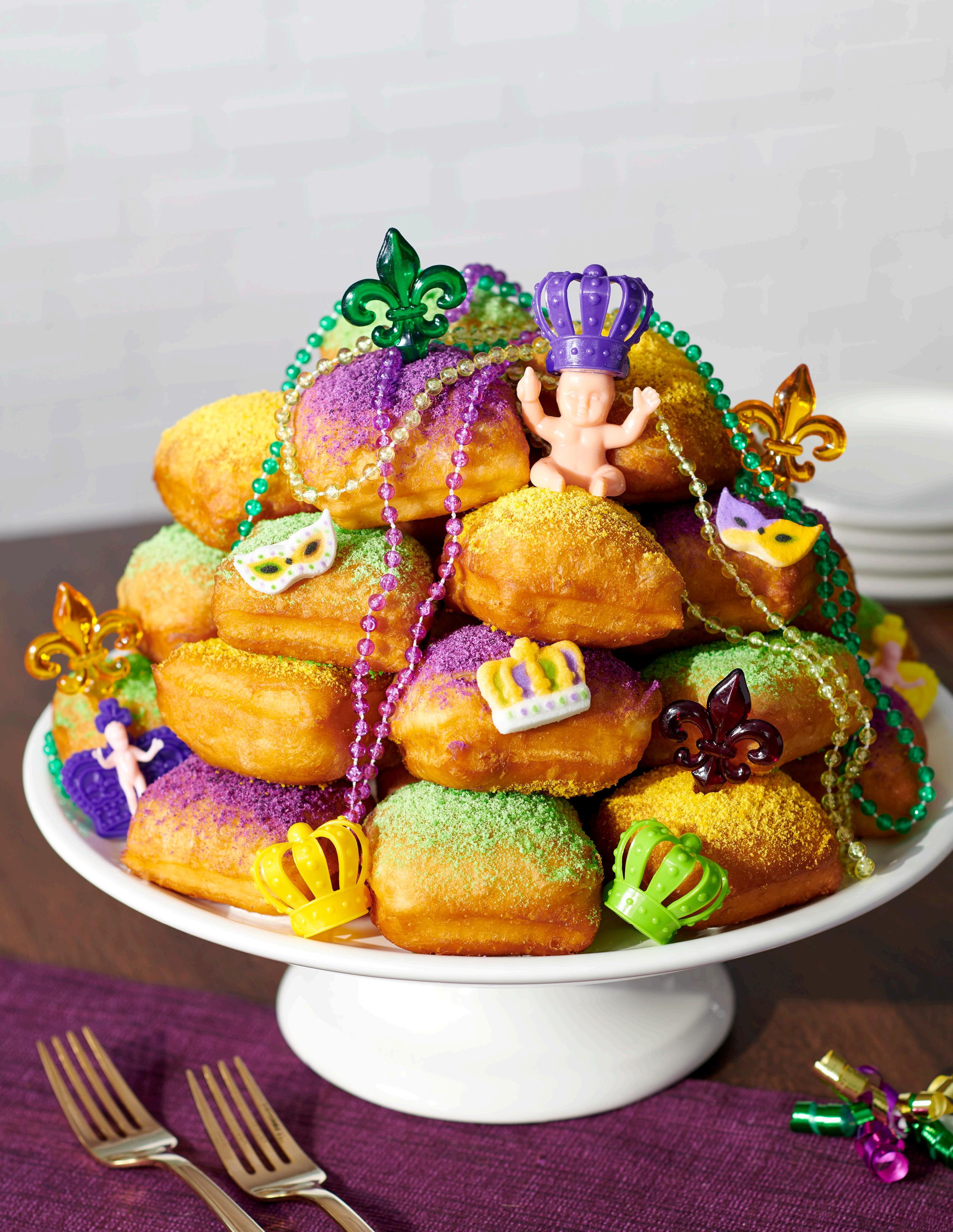 Shown on cover: Beignet tower: #41269 Mardi Gras Baby Crown Necklace Set Layon, #16260 Baby Kings Cake Layon, #17811 Mardi Gras 3D Crown Cupcake Rings, #38854 Fleur De Lis Translucent DecoPics®, and #48578 Mardi Gras Party Assortment Dec-Ons®