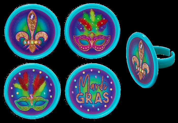 1-800-DECOPAC4 Rings & Cupcake Layons MARDI GRAS 3D CROWN #17811 Rings 144/Pkg MARDI GRAS CELEBRATION #24739 Rings 144/Pkg Shown: #17811 Mardi Gras 3D Crown Rings, #20690/9462 Lavender Sanding Sugar, #20689/8785 Yellow Sanding Sugar, and #21054/10380 Lime Green Sanding Sugar Shown: #24739 Mardi Gras Celebration Rings Shown: #23865 Gold Balloon Words Mini Cupcake Layon, #24048 Gold Confetti Quins, #11004/20698 Lavender Sprinkles, #9464/20705 Yellow Sprinkles, and #10381/20699 Lime Green Sprinkles GOLD BALLOON WORDS MINI #23865 Cupcake Layon 72/Pkg – 2.45” × 0.9”