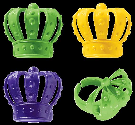 Shown: #17811 Mardi Gras 3D Crown Rings, #20689/8785 Yellow Sanding Sugar, #21054/10380 Lime Green Sanding Sugar, and #20690/9462 Lavender Sanding Sugar