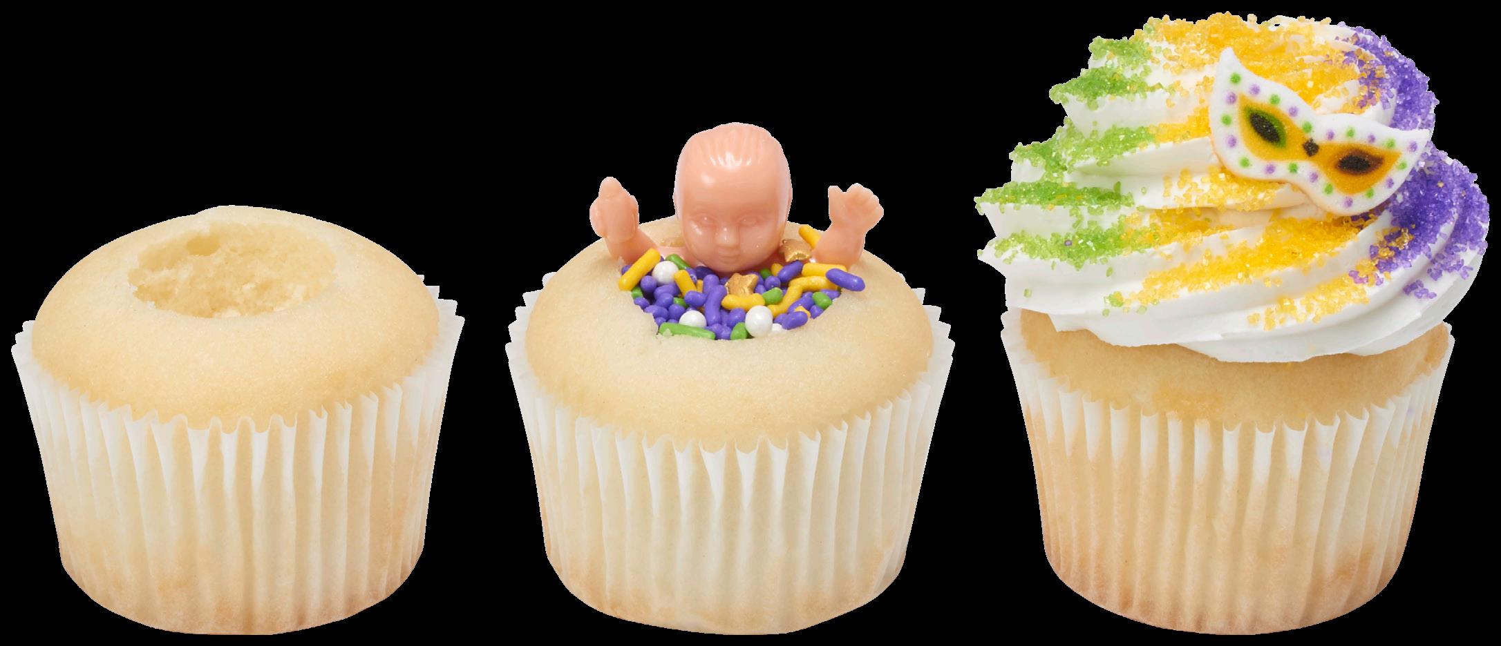 DECOPAC.COM 9 Layons MARDI GRAS MASKS #24738 Pop Tops® 12/Pkg – 3.95” × 4.6” – $10.52 Pop Tops® BABY KINGS CAKE #16260 Layon 24/Pkg – 1.1” × 1.45” h – $5.88 Shown: #24738 Mardi Gras Mask Pop Tops® Nobody puts baby in a...cake? For Mardi Gras, yes we do! Dig out a hole in your cupcake, then add in the Baby King Cake Layon with your choice of sprinkles, and pipe over all of it! VOILA! A personalized hidden Kings Cake Baby for customers.