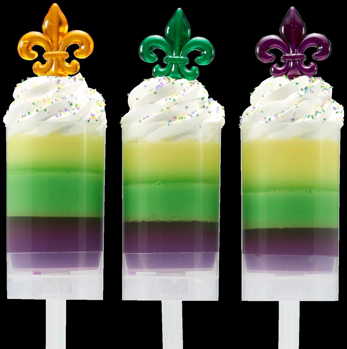Shown on jumbo cupcake: #29117 Kings Cake Baby Assortment Layon and #29116 Mardi Gras Deluxe Fusion Mix