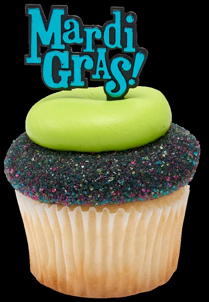 Shown on jumbo cupcake: #29117 Kings Cake Baby Assortment Layon and #29116 Mardi Gras Deluxe Fusion Mix