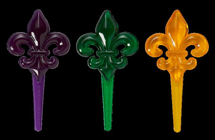 Shown: #38854 Fleur de Lis Translucent DecoPics®, #20690/9462 Lavender Sanding Sugar, #20688/8782 Green Sanding Sugar, #20689/8785 Yellow Sanding Sugar, and #15737 Push-DecoPop® Cake Pop Pushpop