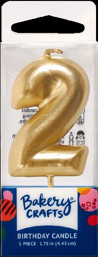 2 MINI GOLD #24461 Numeral Candles 6/Pkg – 1.4” × 3.6”