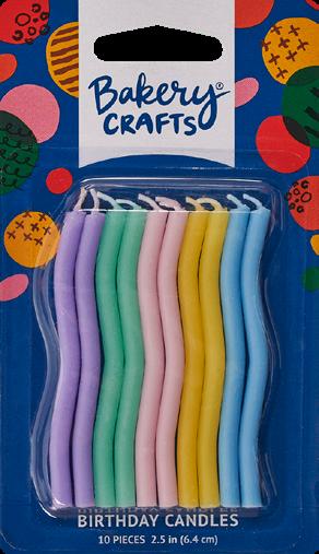 Shown on front cover: 22 count donut stack: #28755 Happy Birthday Bright Shaped Candles, #11916 Primary Crazy Coils Shaped Candles, #41555 Rainbow Ombre Specialty Candles, #6665 Party Hats Shaped Candles, #39065 Glitter Assortment Smooth & Spiral Candles, #20710/ 9465 Multi-Colored