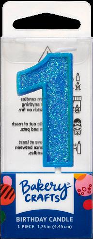 3 Mini Glitter Numeral Candles, #39065 Glitter Assortment Smooth & Spiral Candles, #37744 White Polka Dots Assortment Specialty Candles, and #41553 Blue & Green Ombre Specialty Candles