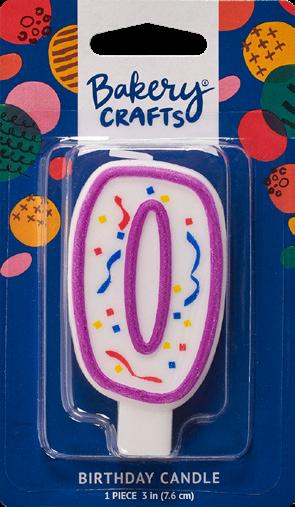 A classic numeral candle with a confetti pattern and vibrant green border. An excellent gender-neutral option. 12/Pkg –