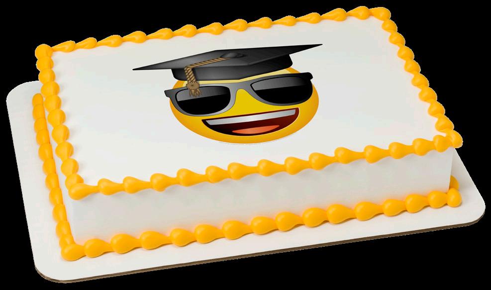 Decorations may vary by store. 9 LITTLE GRAD FUTURE IS SO BRIGHT #26923 Edible Image® Printed by PhotoCake® SUNSHINE GRAD ASSORTMENT #28568 WHITE GRAD CAP WITH TASSEL #13061 BRIGHT GRAD HATS #28591