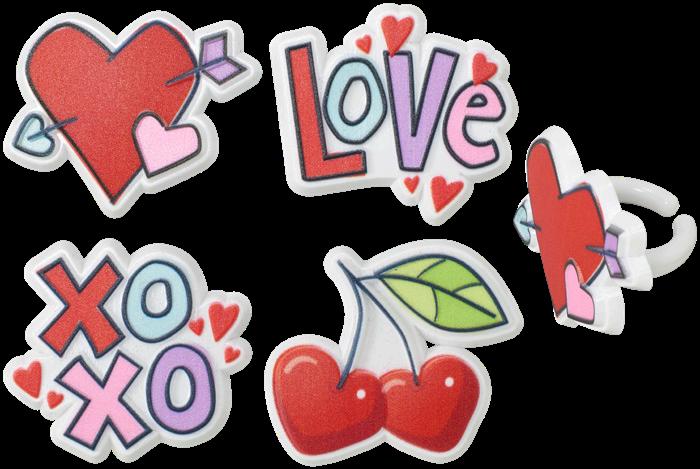 Shown: #22686 Emoji™ Heart Assortment Rings, #21046/8784 Red Sanding Sugar, #21048/9457 Pink Sanding Sugar, and #22940 Valentine Fusion Mix