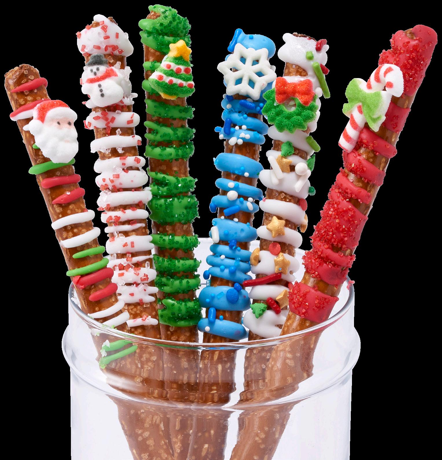 Shown on cover: Cake: #52210 A Merry Christmas Variety Edible ImageĀ®, #52209 A Merry Christmas Variety Edible ImageĀ® Designer PrintsĀ®, and #28913 Christmas Ornament Assortment Dec-OnsĀ®; Cinnamon Rolls: #28917 Merry & Bright Sweet DĆ©corĀ®; Hot Chocolate: #28911 Christmas Assortment DecoPicsĀ® and #28917 Merry & Bright Sweet DĆ©corĀ® Top 5 Holiday Desserts 2 Cupcakes 1 Hot Chocolate Table of Contents 4 RELIGIOUS 6 HANUKKAH 8 RINGS 11 DECOPICSĀ® 13 SKEWERS & DECOSETSĀ® 15 DEC-ONSĀ® 18 SWEET DĆCORĀ® 19 POP TOPSĀ® 21 LAYONS 24 GUM PASTE 26 PHOTOCAKEĀ® EDIBLE IMAGEĀ® & EDIBLE IMAGEĀ® 34 SPRINKLES, QUINS, & FUSION MIXES 35 SANDING SUGAR, EDIBLE GLITTER, & CHOCOLATE 36 PREMIUM GEL COLORS 37 DECORATING TIPS, TREAT STICKS, CUTTERS, & CAKE BOARDS