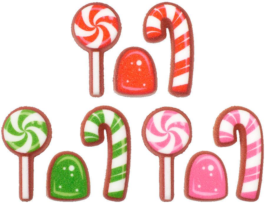 Shown: #50807 Gingerbread Man Assortment Dec-OnsĀ®, #43057 Snowflake Assortment Dec-OnsĀ®, #21324/5841 Trees & Dots Sprinkle Mix Quins,
