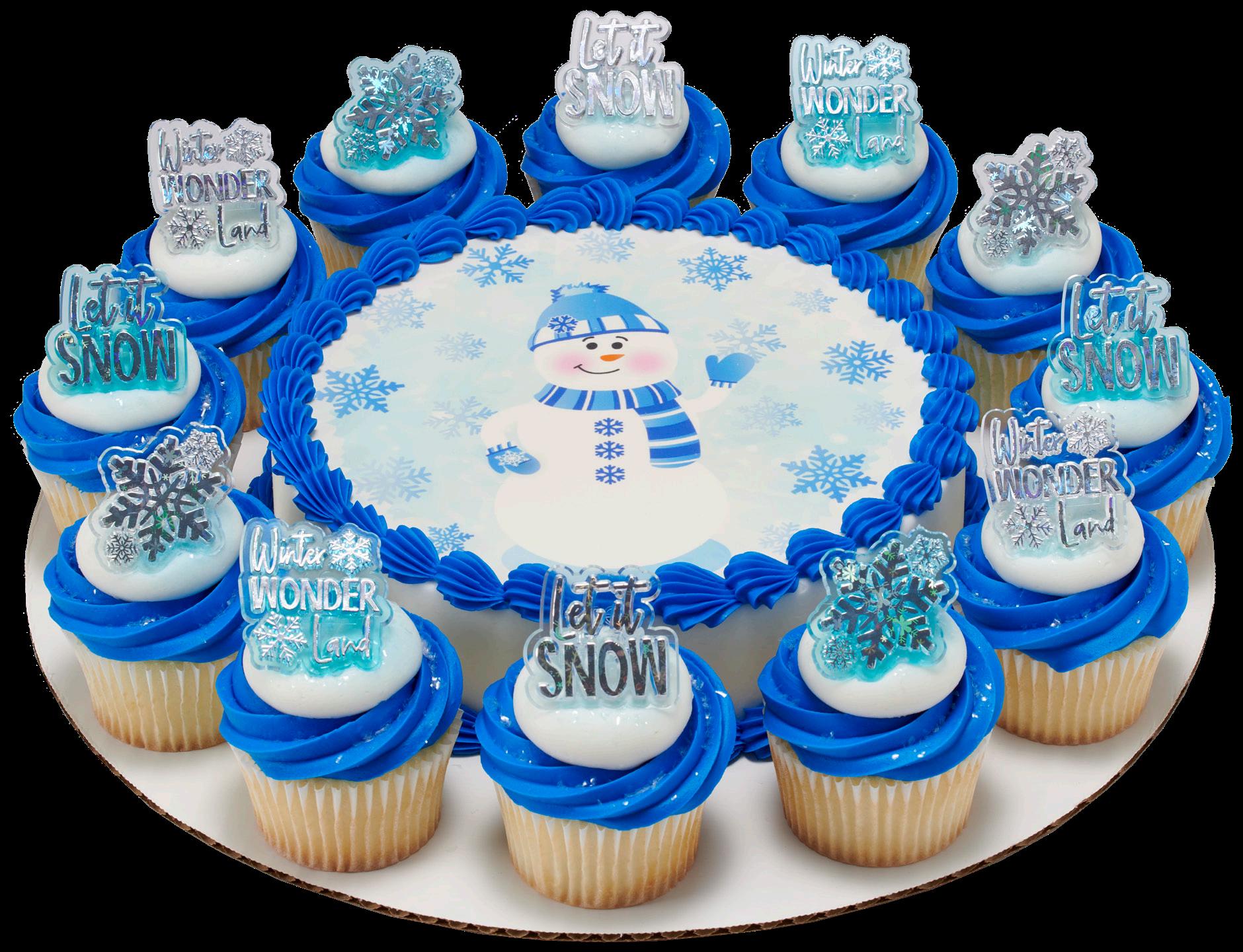 Shown on 8ā double layer round: #27617 Merry Christmas Deer Layon, #27803 Christmas Bauble Rings, #27420 Ornaments PhotoCakeĀ® Edible ImageĀ®, #43057 Snowflake Assortment Dec-OnsĀ®, and #41595 Star Pearl Edible Glitter