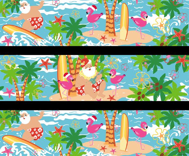 Shown on 8ā double layer round: #27406 Surfinā Santa PhotoCakeĀ® Edible ImageĀ® Strips, #52069 Santa on Summer Holiday Assortment Edible ImageĀ®, #50767 Tropical Summer Assortment Dec-OnsĀ®, and #20693/15974 Lollipop Confetti Quins