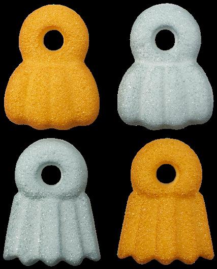 Shown on previous page: 8” double layer square: #28452 Gold Cross Layon and #21351/18200 White Pearl Grande Nonpareils; Mini tarts: #23110 Angelic Assortment Rings, #25004 Gold Hexagon Edible Glitter Shapes, #38134 Star White Edible Glitter, and #20709/9455 White Sanding Sugar GLASS CROSS #25442 Layon 1/Pkg – 4.5” × 7” – $4.28 WHITE ORNATE CROSS #45819 Dec-Ons® 16/Pkg – 3.2” × 3.15” – $17.90