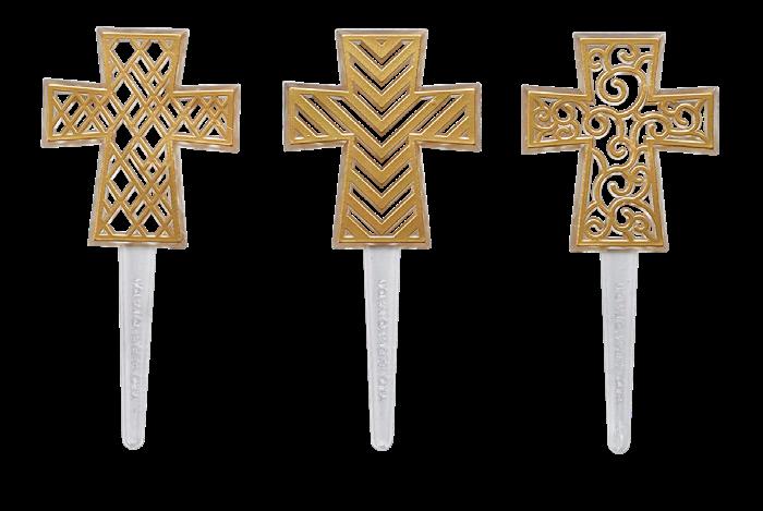 ® Each – No Charge GOLD CROSS #28452 Layon 6/Pkg – 2.65” × 4.95” – $15.23 ORNATE CROSS #7095 Gum Paste Layon 3/Pkg – 2.85” × 3.85” – $7.41 NATIVITY SCENE #26264 Gum Paste Layon 6/Pkg – 4.95” × 6.45” h – $18.52 SMALL WHITE CROSS #48116 Dec-Ons® 96/Pkg – 1.1” × 0.8” – $17.28