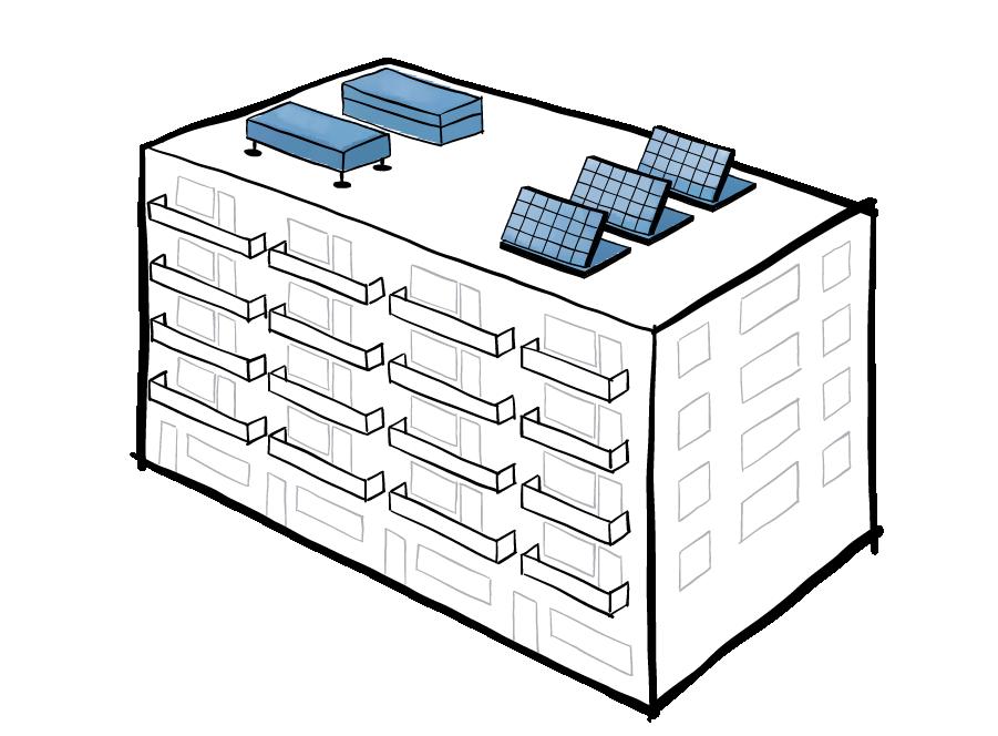 generally hidden within the building itself – with the exception of mechanical and renewable energy system siting, and exterior lighting. Efficient active strategies that make use of low-carbon energy sources (e.g., hydroelectricity) reduce emissions as well as energy. In addition to passive and active strategies, the use of ‘smart controls’ for improving efficiency of operations and generating renewable energy on-site (e.g., via solar photovoltaic panels) can also be explored to provide a source of clean energy for the building’s remaining energy demand.