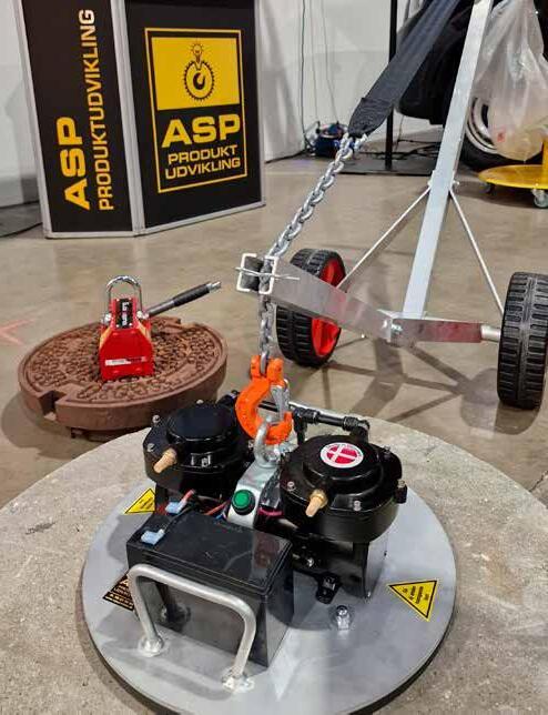 Langt de fleste leverandører, der udstiller, er dog danske. En af dem er ASP Produktudvikling, der har taget et udvalg af mindre kraner til montering på lad og i biler med samt et par hydrauliske fliseløftere med vakuum. Kranerne kan løfte op til 400kg og skal hjælpe medarbejdere med tunge og besværlige løft ind og ud af bilen. Fliseløfteren kan løfte op til seks fliser med vakuum samtidig og tiltrækker mange nysgerrige blikke. Dog er det ikke kun for at sælge, at indehaver Simon Sørensen og Daniel Andersen fra salg og marketing står på Kloakmessen.