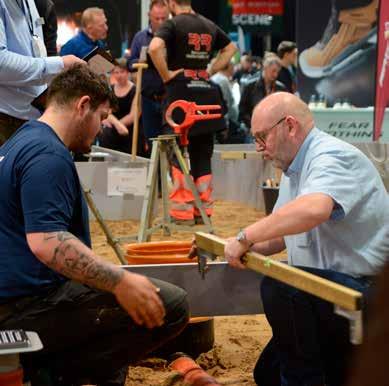 Kiggede man rundt på Kloakmessen, var der udstillede lastbiler, bobcats, minigravere, biler, kraner, bundfældningstanke, riste og andet ”grej” på langt de fleste stande. Det var muligt at ”sparke dæk”, eller at ”pille, rode og rage”, som End User Specialists Shazi Sheraz Granhøj og Thomas Zimmermann fra DeWalt udtrykte det. De stod midt i den sandkasse, der udgjorde standen, med blandt andet en jordloppe og en pladevibrator – begge på DeWalts nye batteriplatform Powershift. Og interessen for maskinerne var markant.