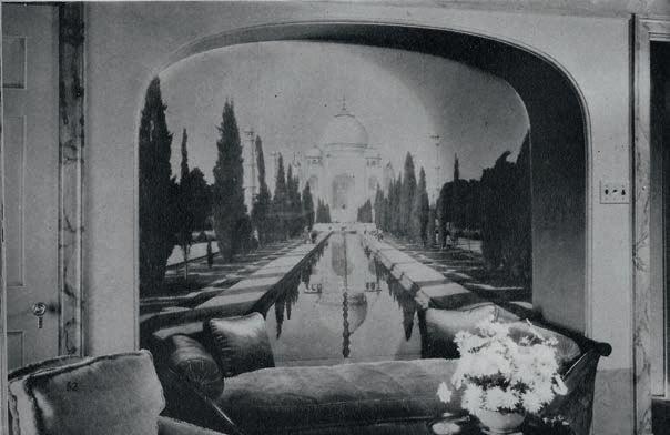 36 links Kaufmann & Fabry, photomural des Taj Mahal in den Wohnräumen von Charles B. Goodspeed und Elizabeth Fuller Goodspeed, Chicago, 1927, aus: Mechanix Illustrated, August 1938, S. 52; rechts Edward Steichen, Photomurals in der Men’s Lounge des RKO Roxy Theatre, 1230 Sixth Avenue, New York City, 1932, VG Bild-Kunst, Bonn 2022, Foto: Irving Browning, courtesy of the Collection of the New-York Historical Society