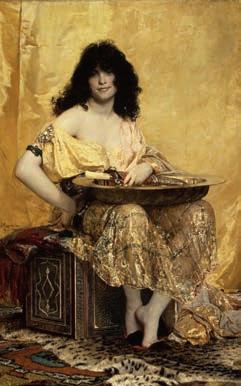 40 links Marià Fortuny i Marsal, Eine Straße in Tanger, 1869, Aquarell auf Papier, 36,67 × 50,17 cm, National Gallery of Art, Washington, Inv.-Nr.: 2015.19.296, © Courtesy National Gallery of Art, Washington; rechts Henri Regnault, Salome, 1870, Öl auf Leinwand, 160 × 102,9 cm, The Metropolitan Museum of Art, New York, Gift of George F. Baker, 1916, Inv.-Nr.: 16.95, © The Metropolitan Museum of Art, New York