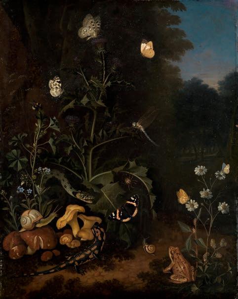 /, Public Domain Mark; unten Franz de Hamilton, Disteln am Waldrand mit Tieren und Insekten, 1702/1703, Öl auf Kupfer, 54,8cm x 43,5 cm, Staatliche Kunsthalle Karlsruhe, Inv. 355
