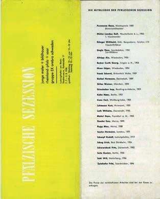 31 links Hans Purrmann an Willibald Gänger, Brief vom 19. Dezember 1953, Museum Pfalzgalerie Kaiserslautern, Graphische Sammlung, © VG Bild-Kunst, Bonn 2022 (Erbengemeinschaft nach Dr. Robert Purrmann), Foto: mpk; Mitte Titel- und Rückseite des Katalogs für die Jahresausstellung der Pfälzischen Sezession 1956 im Stadtmuseum von Ludwigshafen am Rhein (Leporello), Foto: mpk; rechts Hans Purrmann, Selbstbildnis, 1953, Öl/Lwd., 79,8 × 64,7 cm, Museum Pfalzgalerie Kaiserslautern, Inv.-Nr. PFG 54/2, © VG Bild-Kunst, Bonn 2022 (Erbengemeinschaft nach Dr. Robert Purrmann), Foto: mpk