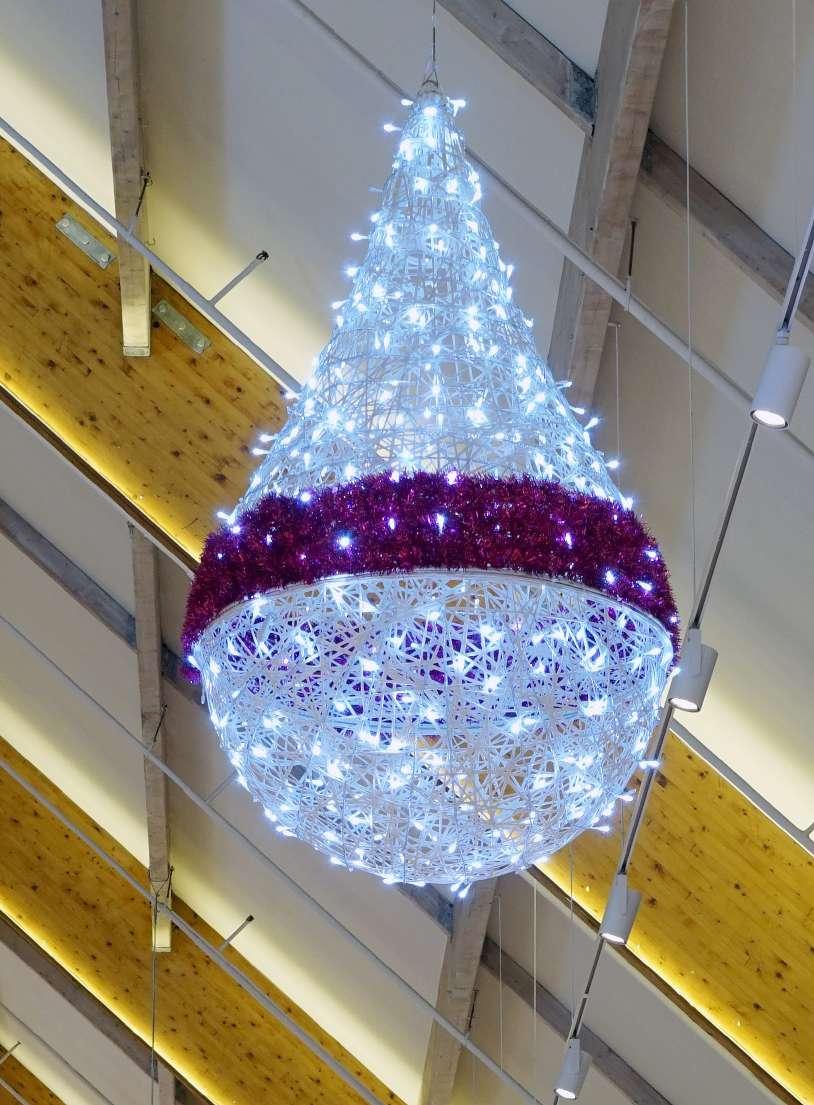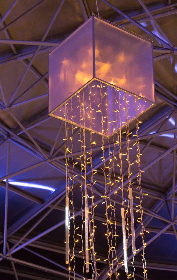 LÁMPARA LED · iluminada y decorada en rama magenta