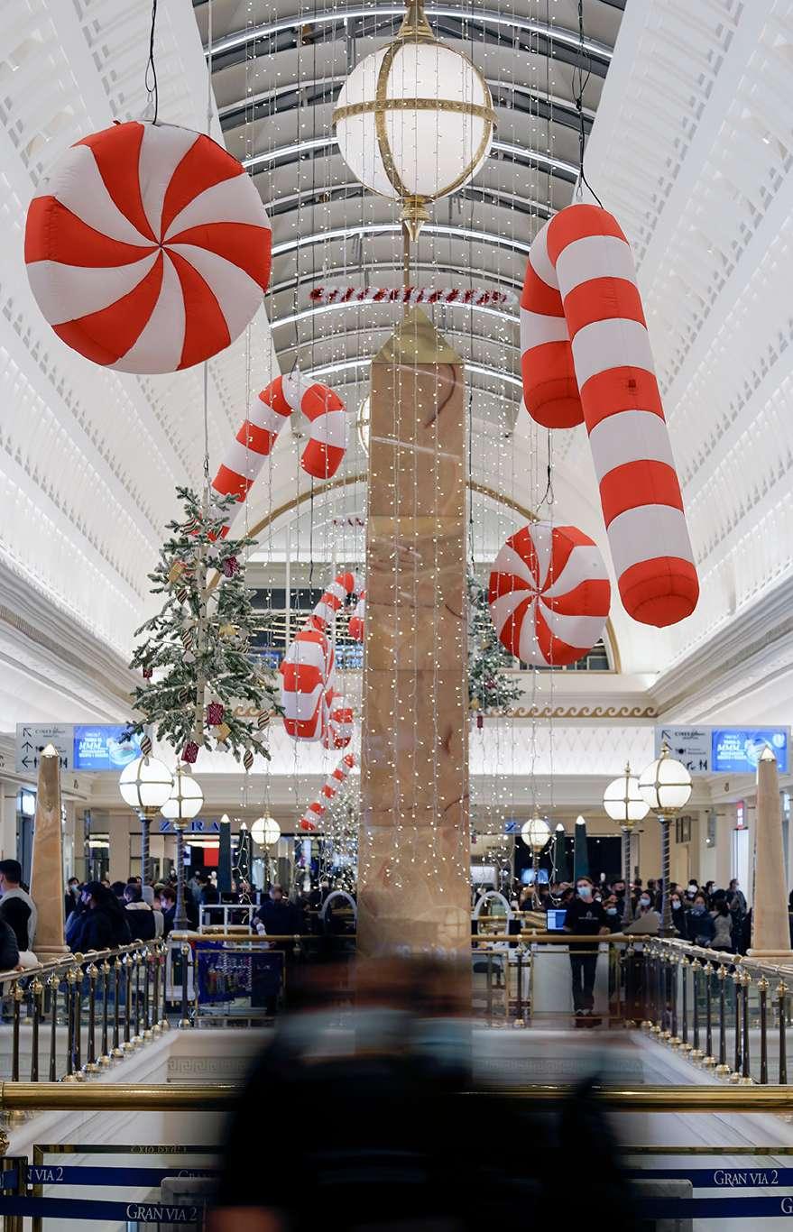 BASTÓN RAMA DE ABETO · iluminado y decorado en rojo
