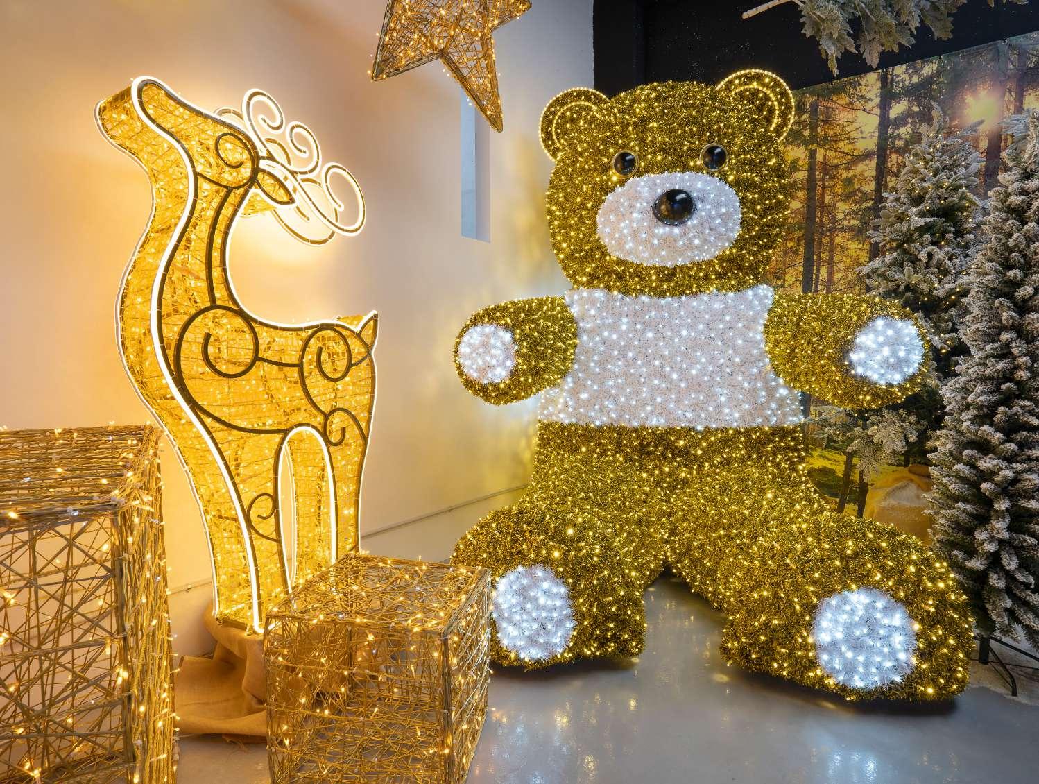 OSITO SENTADO · Forro dorado / blanco + led blanco