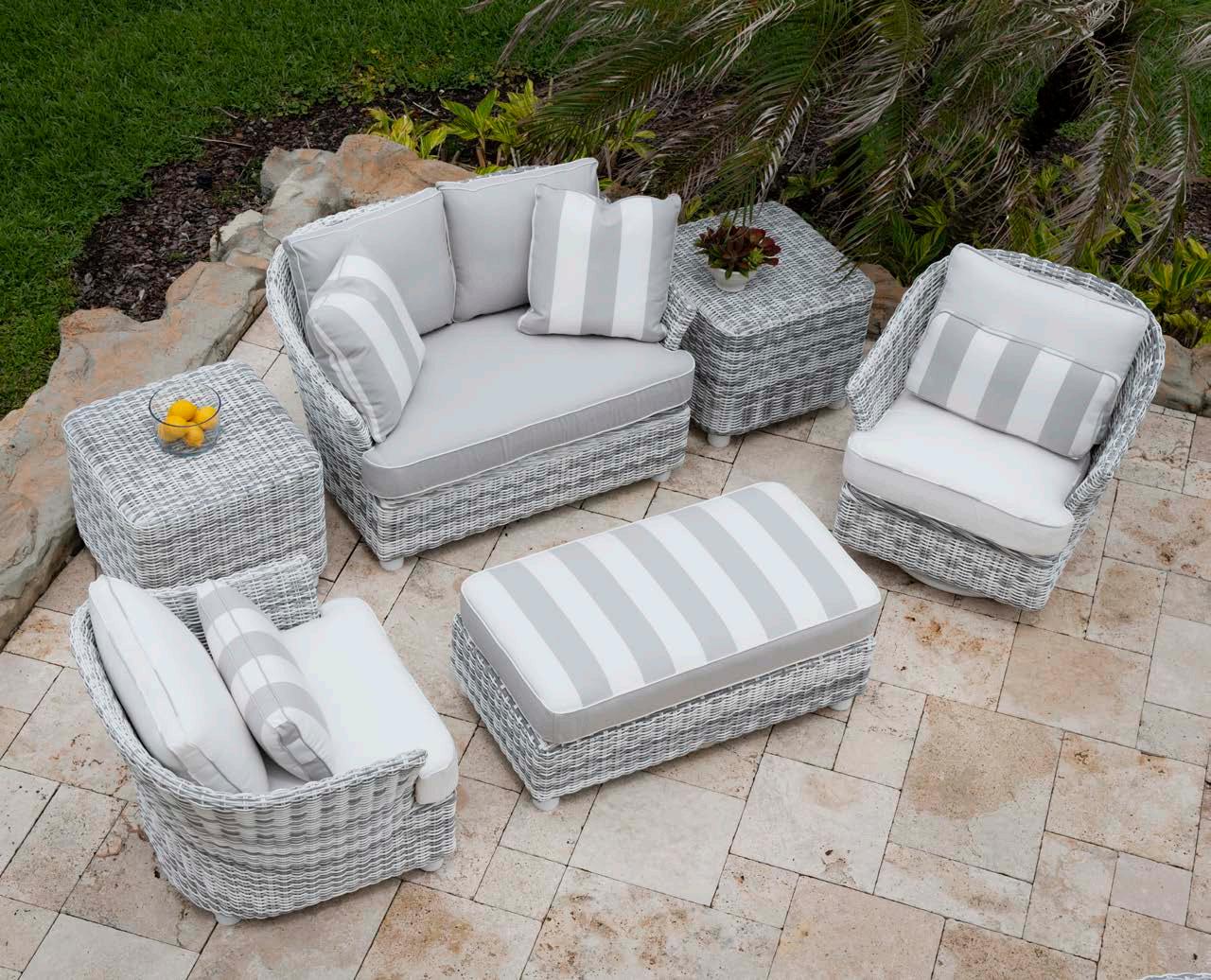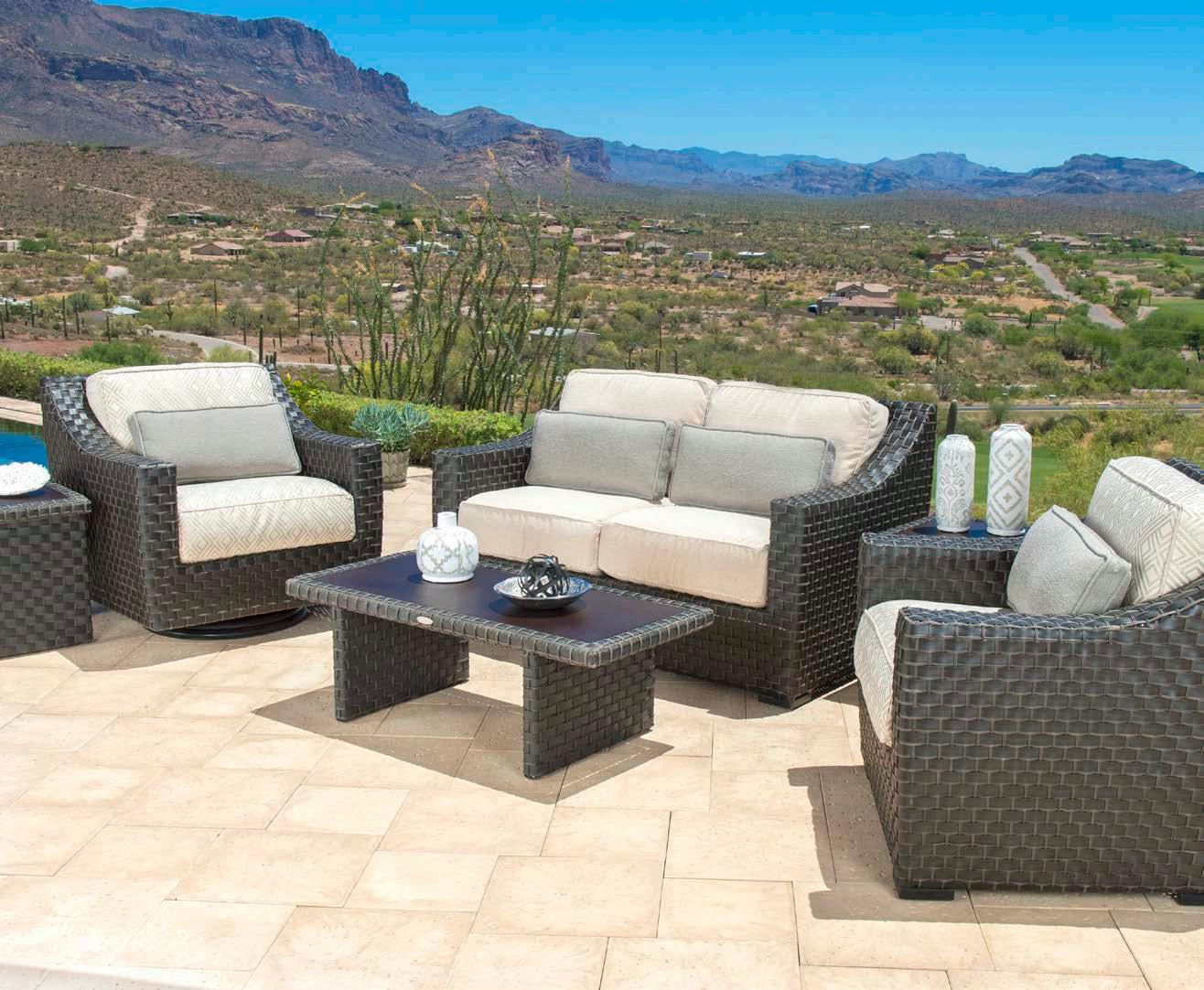 Straight lines, combined with slight curves and woven weather-resistant wicker define the extensive Augusta Collection. Augusta combines classic charm with enduring comfort making it an ideal choice for sophisticated outdoor living spaces.