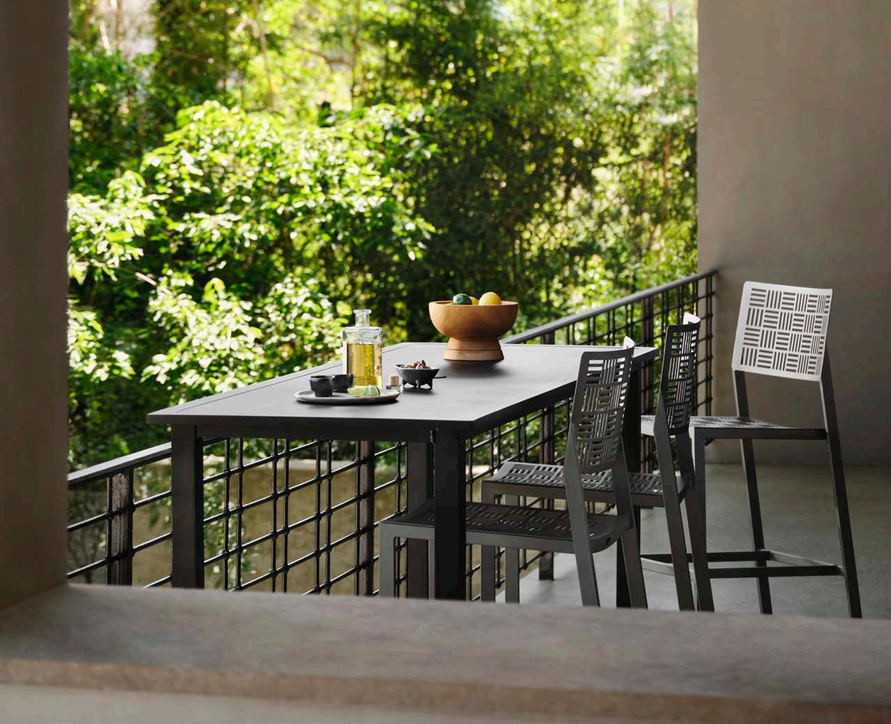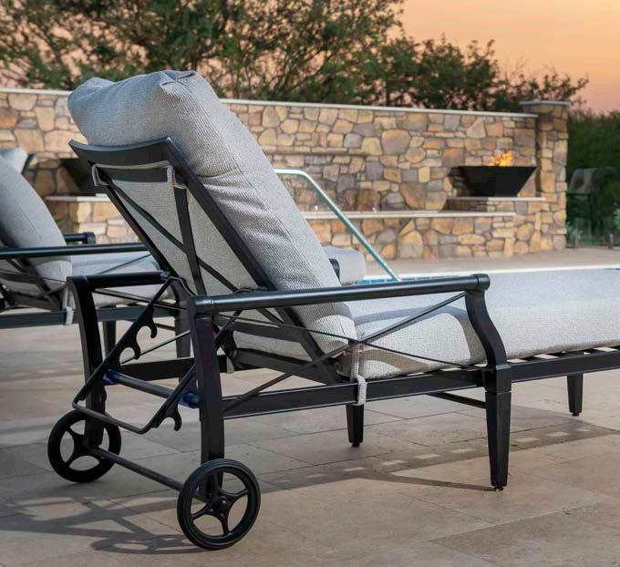 Organic curves give the Apollo Collection its distinctive personality. This cast aluminum collection features an intricate design on the table tops which is mimicked on the backs of the lounge and dining chairs, both of which are also available as motion pieces.