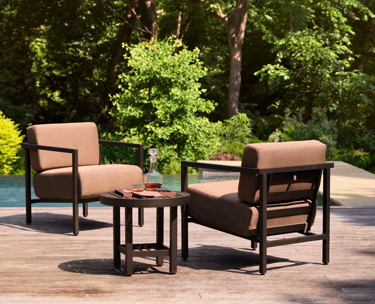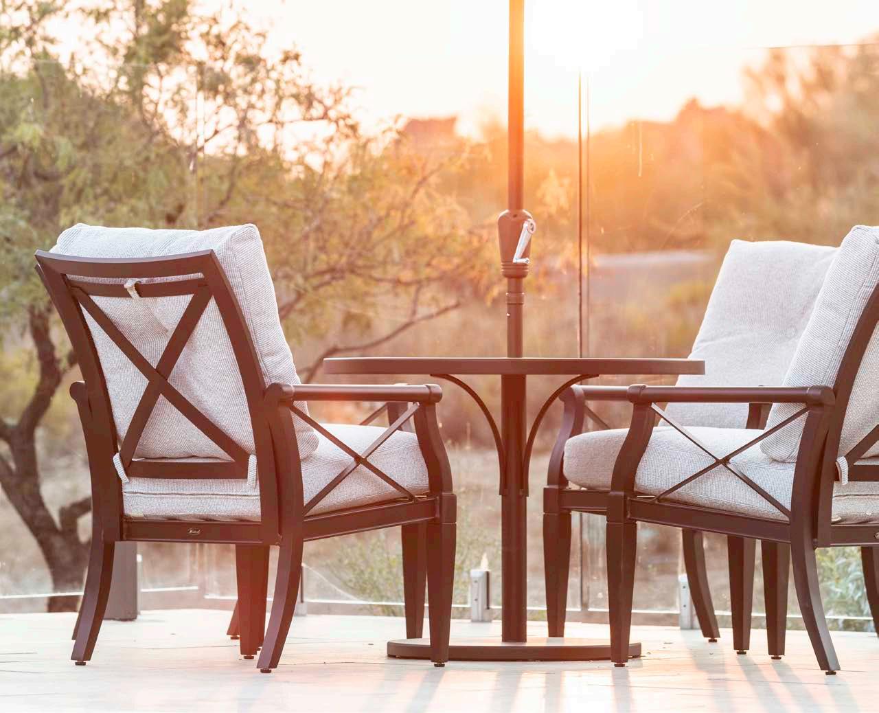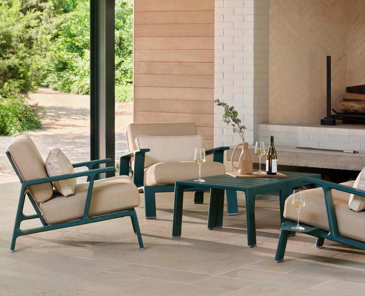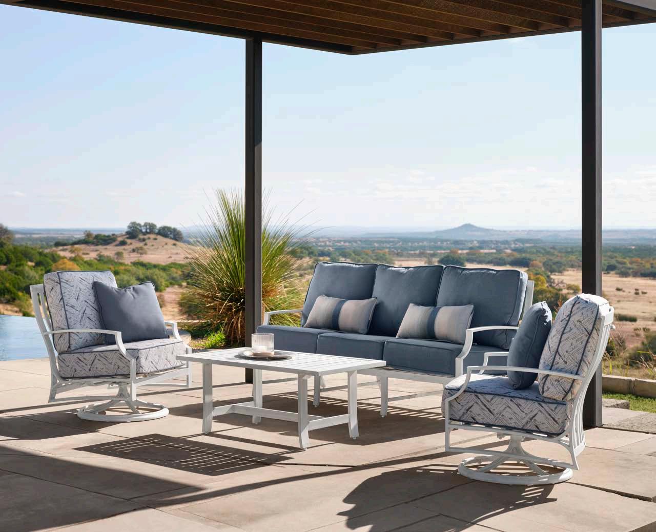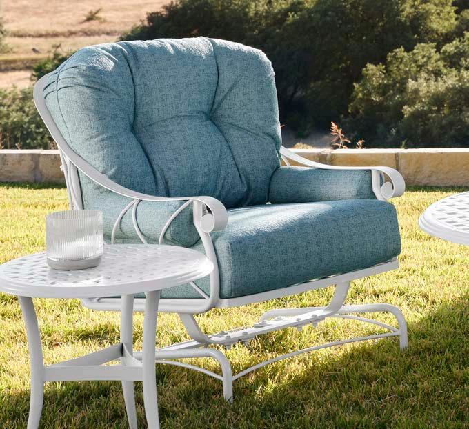 Manufactured in extruded aluminum with a striking “X” detail throughout, this collection is available with outdoor cushions in your choice of all-weather fabrics and frames in numerous finishes. Andover is complete with multiple dining and seating options including a relaxing recliner, a sofa, a crescent-shaped sofa and a love seat.