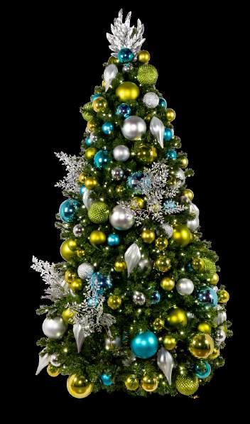 69” base, 2,581 tips, 1,150 warm white LED mini lights, 130 watts, 107 lb.
