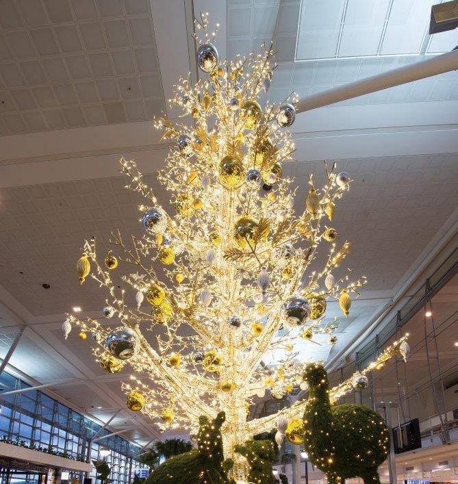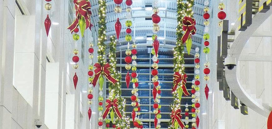• Customize your tree with branded holiday graphics, ornaments, and hanging elements