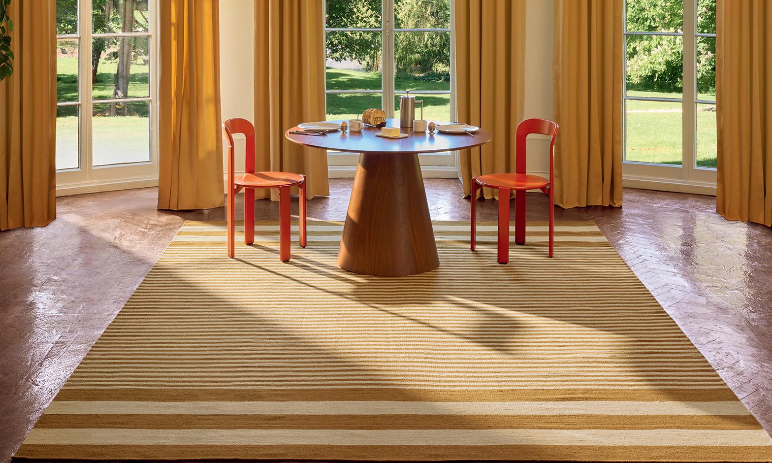 ARCHETYPE, the first artisanal wool rug collection from Kirkby Design, is influenced by the brand’s signature palette of earth tones and monochromatic combinations. Consistent with an ongoing focus on sustainability, six bold designs are composed using a mix of responsibly sourced fibers. The brand’s debut line of rugs is accompanied by versatile collections of EasyClean Recycled Textured Velvets and textured weaves.