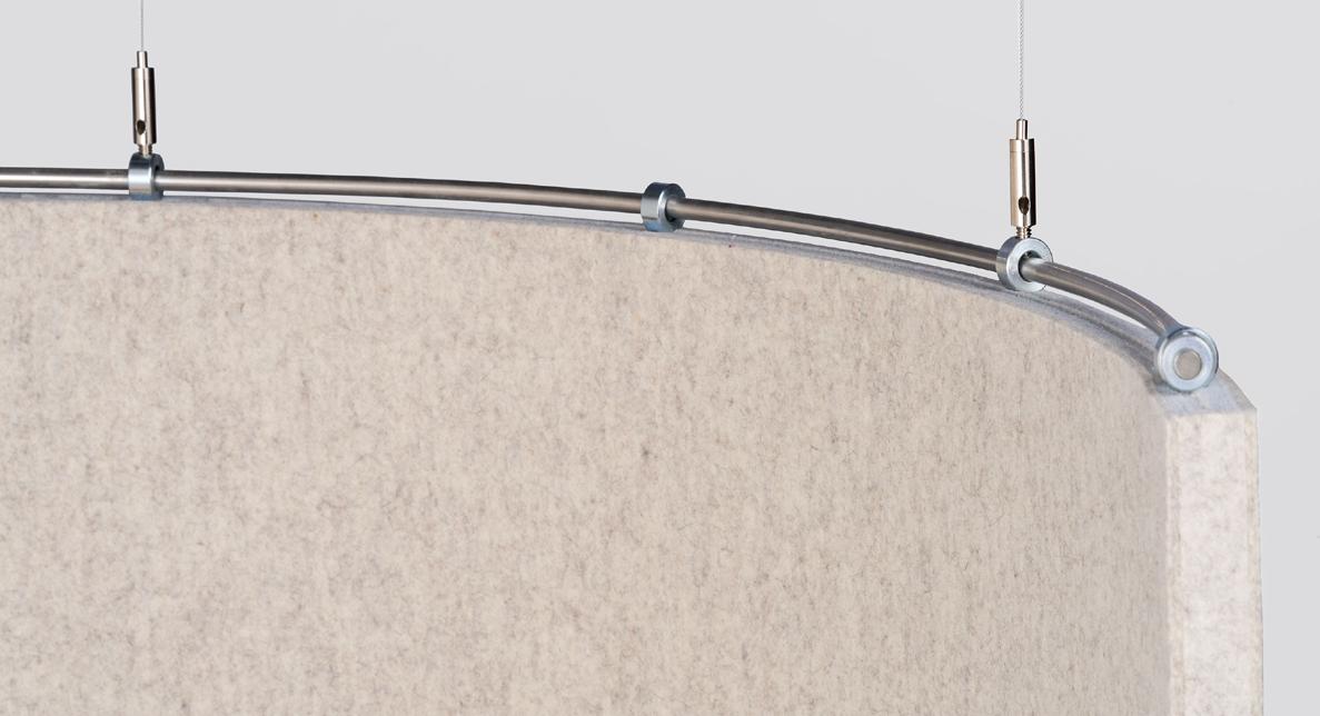 Nest Baffle for FilzFelt by Kelly Harris Smith is inspired by her pattern work in textiles and a recent collection of graphic watercolor prints. The Nest series includes two rounded and one linear panel that can be oriented in endless patterns and add a natural softness overhead in over ninety colors of pure wool felt.
