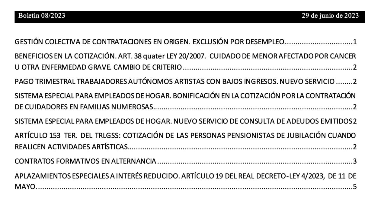 El boletín 8/2023 informa sobre las principales novedades en materia de cotización tanto para el régimen general como para el sistema especial de empleados de hogar, artistas y los contratos formativos en alternancia