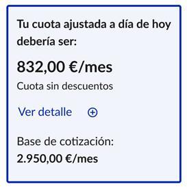 Una vez indicados los rendimientos, el simulador mostrará la “Cuota y base de cotización” ajustada que debería tener el autónomo desde la siguiente fecha de efectos del cambio de base hasta final de año para no tener que regularizar. Esta cuota puede variar si las circunstancias del trabajador autónomo cambian.