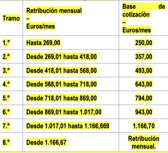 En el año 2023, las retribuciones mensuales y las bases de cotización por contingencias comunes y profesionales serán las contenidas en la siguiente escala: