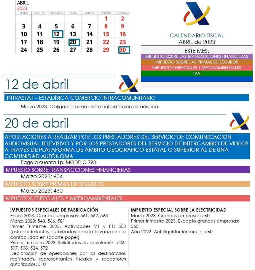 Calendario FISCAL Abril 2023 - www.gabinetedelaorden.com